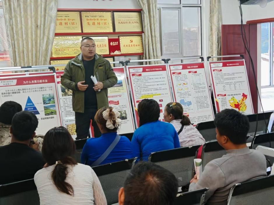 5月5日,团队首站抵达下察隅镇,针对当地高海拔地理特征与特色农业需求,举办1场专题培训及科普推介。山西农业大学林文副教授以功能作物栽培管理技术为主题,结合当地资源优势和前期研究成果,系统讲解了功能糯玉米的田间管理技术,为农户送上“技术干货”。我校资源与环境学院侯磊副教授围绕“功能农业基础知识与边疆实践”,以察隅县特色作物为例,通过本土典型案例剖析,深入浅出地阐释了功能农业在提升农产品附加值、助力农民增收中的实践路径,进一步凸显了功能农业在边疆地区的适用性与发展潜力。培训现场气氛热烈,数十名基层农技人员、农户积极参与交流互动,围绕“如何提高作物对矿物质元素的富集效率”“功能农产品市场对接渠道建设”等具体问题踊跃提问。团队结合察隅县土壤特性与气候条件,逐一提供针对性解决方案,并向参与者发放了功能农业科普宣传册,同步推广团队在猕猴桃矿物质营养强化等领域的科研成果,为当地农业生产提供了直接的技术支撑。当日下午,在枇杷种植基地,团队现场推介了猕猴桃矿物质营养强化科研成果,向农户讲解富锌、富硒作物施肥技术,强调“科学种植”与“健康消费”的有机结合,切实帮助农户理解功能农业的实践价值。
