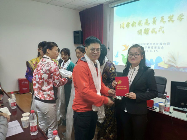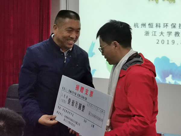 讲座前,杭州恒科环保有限公司为我院捐款10万元,作为资源与环境学院在校生创新创业和贫困生助学专项奖助学金。捐赠仪式上,董事长吴卫兵先生对我院学子提出了殷切希望,并表达了持续资助我院贫困生、支持我院学生创新创业的意愿。