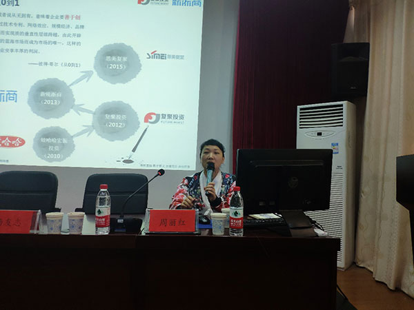 讲座上,周丽红女士从自身求学、创业、投资的经历出发,阐述了高等教育中,综合素质培养和专业能力教育在个人发展中的不同作用,让同学们认识到了综合素质培养对创业、就业中的重要性,让大家认识到:大学生创新创业是大学生个体发展的一个重要方面,兴趣是最好的老师,创业要从自己的兴趣出发,只有充分认识自我,从“心”出发,才能坚持下去,才能创造奇迹。同学们要挑战自我,依据自身的特点,明确目标,会想、敢想,能干、会干,在未来的职业生涯中克服传统思维,运用创新思维,不断地提升自己,才能实现自己的职业梦想。