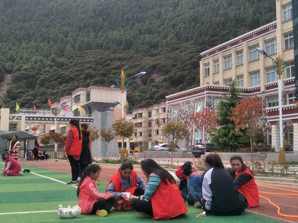点滴爱心,传递希望。志愿者们怀着高涨地热情到达福利院后,会长袁闯详细地进行了工作安排,志愿者们带着自己的任务到自己的负责教室,对孩子们一一进行功课辅导。在辅导过程中每一位志愿者都将自己积累的知识及学习方法倾囊相授。在辅导完孩子们的功课后,志愿者们充分发挥自己特长对孩子们进行汉语、藏语、英语、数学等基础知识培训。整个活动过程中志愿者采用劳逸结合的方法,在功课及基础知识辅导完成后的基础上,带领着负责的孩子们到操场进行踢足球、打篮球、老鹰捉小鸡、丢手绢等户外运动,充分调动了孩子们的积极性,同时也培养孩子们开朗活泼、乐观向上的生活态度。