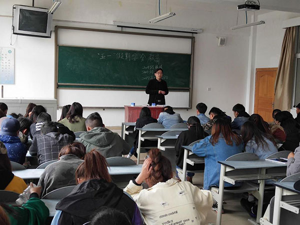 为增强同学们的安全防范意识,提高同学们的安全防范能力。我院党委牵头,4月28日我院所有班级分别在3号教学楼教室开展“五一”假期安全教育主题班会。