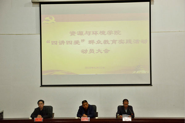 为深入贯彻落实习近平总书记系列重要讲话精神和治国理政新理念新思想新战略,进一步推进“四讲四爱”群众教育实践活动,6月15日14时,我院于2107教室组织召开了“四讲四爱”群众教育实践活动动员大会。资源与环境学院党委书记普穷、党委副书记邹联付以及团总支书记黄川出席此次会议。资源与环境学院各班班长、团支书以及团总支、学生会全体成员参加了此次会议。