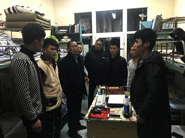 为进一步加强学生宿舍的规范化管理,保障我院学生的生命财产安全。我院于2018年3月5日21:00开展了学生宿舍安全隐患大排查。检查组由资源与环境学院党委书记普穷、副书记邹联付担任组长,宿管科洛追朗杰、学生科全体辅导员共同参与,对我院学生宿舍楼进行了深入细致的安全隐患排查工作。
