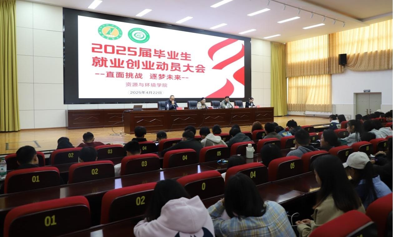 为深入贯彻落实学校关于毕业生就业创业工作的部署要求,引导未就业毕业生树立正确的就业择业观,资源与环境学院于2025年4月22日召开“直面挑战,逐梦前行”2025届毕业生就业创业动员大会。学院党委书记次仁吉、副书记院长孙自保、副院长王忠红、分管就业辅导员索朗曲珍及2025届全体毕业生参加会议。