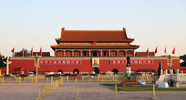 虽然之前劳累了一天,但是为了目睹庄严的升旗仪式,我们交流团冒着严寒天还没亮就赶到天安门广场等候升旗仪式的开始。朝霞初露,天安门广场上清场,闲散人员统统被清理出场,空荡荡的天安门广场寂静无声。人们掏出手机,都想要记录下这庄严时刻。