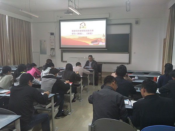 9月21日下午,资源与环境学院党委组织教职工党员集中学习了新修订的《中国共产党廉洁自律准则》和《中国共产党纪律处分条例》,会议由学院党委书记普穷主持,全院教职工党员参加会议。
