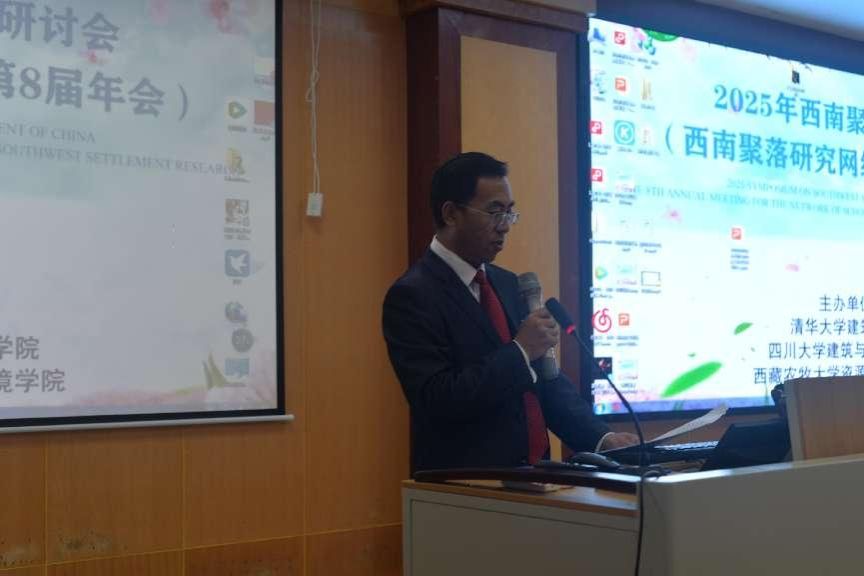 邢校长在致辞中指出:本次会议以“气候变化背景下的聚落人居韧性”为主题,重点聚焦气候变化影响与聚落韧性、极端条件下的人居营造、聚落保护更新的理论与实践三大议题,汇聚多学科视角,探讨可持续发展背景下的聚落保护与创新路径。希望与会专家,紧紧抓住国家重大工程在西藏建设的契机,加强对西藏边疆群众人居环境的影响和改善研究,使我们共同的人居环境研究能为国家建设、边疆稳定、民族团结添砖加瓦。