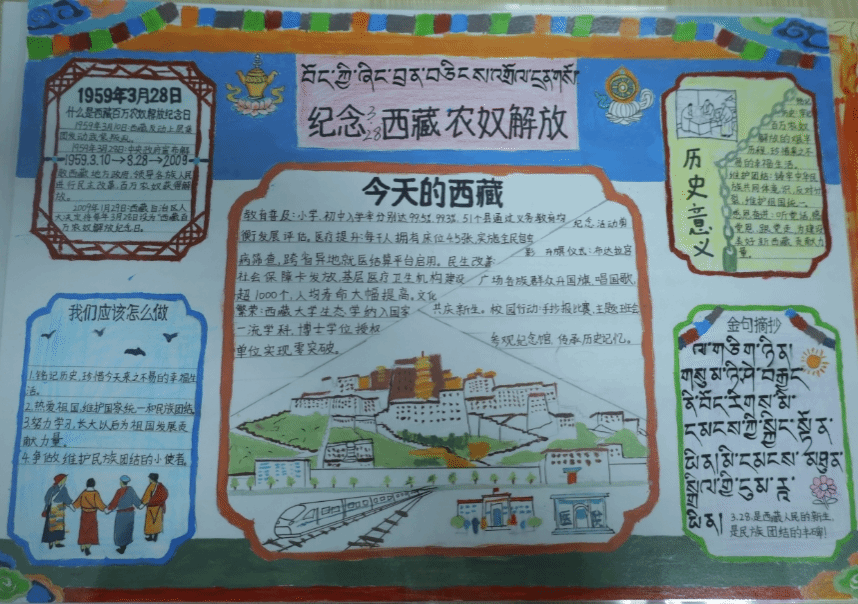 为引导青年学生了解西藏百万农奴解放历史,深刻认识民主改革的伟大意义,资源与环境学院于3月23日至3月26日举办“铭记3・28,共忆解放史,奋进新征程”手抄报比赛,以手抄报创作抒发爱国情怀、凝聚民族团结共识,同时丰富校园文化生活,强化青年学生的家国情怀与时代使命担当,辅导员和俐、高梦晨指导此次活动。