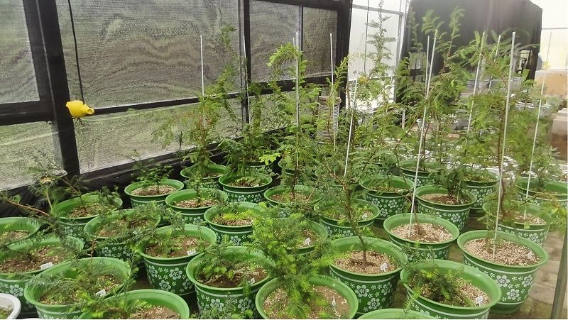 红豆杉属植物在中国境内分布有3种2变种,其中西藏地区分布有2种,即密叶红豆杉Taxus fuana和须弥红豆杉Taxus wallichiana。两种红豆杉均为国家一级濒危保护野生植物,且密叶红豆杉在中国境内仅分布于西藏吉隆县。因两种红豆杉在西藏分布范围狭窄,且天然更新缓慢,西藏农牧学院资源与环境学院红豆杉课题组历时5年,对两种红豆杉进行了扦插扩繁,并通过基质栽培、施肥处理、露地栽培等方式培育了一批优质种苗,并达到了野外回归标准。