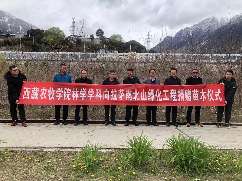 4月6日,西藏农牧学院邀请西藏自治区林业调查规划研究院院长普布顿珠教授级高级工程师、西藏绿景生态工程咨询有限公司副总经理索朗贡嘎一行莅临我校,在“西藏珍稀濒危园林植物培育基地”现场,与资源与环境学院领导班子,园林、林学教师代表,以及研究生代表共同开展了“西藏农牧学院林学学科向拉萨南北山绿化工程捐赠苗木仪式”,共捐赠巨柏、高山松、核桃、多蕊金丝桃、金银木等乡土树种1500余株,该批苗木是资源与环境学院依托校内实习基地,在教学实习过程中师生共同培育的优质种苗,也标志着我校培育林木在拉萨南北山造林中试点应用的正式开始。