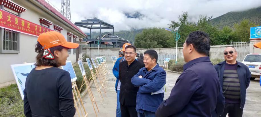 我校资源与环境学院于晶晶老师在为各位领导和专家介绍影展中鸟类有趣的习性时,气氛极为融洽,人群中不时爆发出阵阵笑声。拉增局长认为这些影展介绍不仅有趣,而且加入了文化,让人容易产生共情;田昆教授表示,希望西藏地区的自然教育能早日成形;拉萨科技馆馆长李建川提出希望日后能和我校关于科普宣传一块开展合作交流。