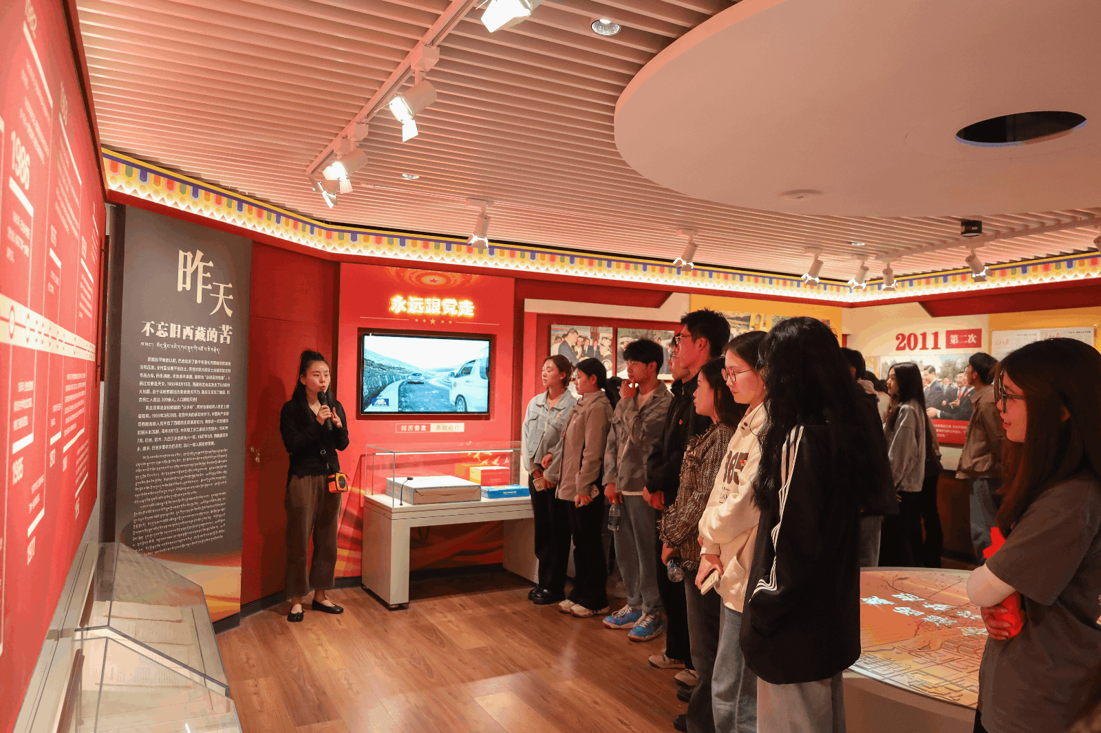 活动第一站,同学们跟随讲解员格桑德吉的脚步踏入了巴宜区“英雄颂”研学馆。他们驻足于一幅幅历史照片前,聆听讲解员讲述那些惊心动魄的战斗故事和英雄人物的壮丽人生。他们被浓厚的革命氛围所感染,他们深刻体会到了革命先辈们为了民族独立和人民解放所付出的巨大牺牲。特别是当讲到李彬烈士等革命先烈的事迹时,许多同学的眼眶湿润了,他们被英雄先辈们的英勇无畏和无私奉献精神所感动,纷纷表示要继承和发扬革命先辈的优良传统,为实现中华民族伟大复兴的中国梦贡献自己的力量。