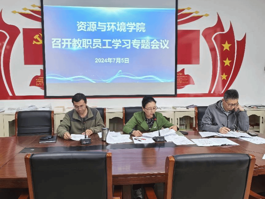 资源与环境学院7月5日下午组织召开教职员工学习专题会议、全体在校教职员工参会,会议由次仁吉书记主持。