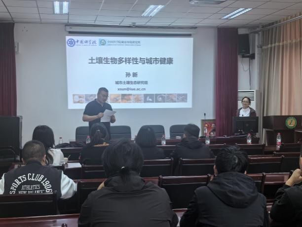 孙新作了题目为《土壤生物多样性与城市健康》的学术报告。结合自身多年来的科研实践,围绕城市土壤质量演变机制,以土壤生态过程的重要驱动力土壤动物为研究对象,以方法-格局-机制为总体思路,总结了城市土壤动物及其共生微生物的多样性空间分布格局及其环境驱动机制。参会师生从自己的研究角度提出了相关问题,研究生巩佳鑫就藏北高寒草甸土壤微生物群落及其与城市人为干扰之间的关系、研究生刘星宇就植物根际微生物与土壤动物之间的关联进行提问,侯磊从土壤生物群落健康、城市生态系统修复等角度进行提问,孙新一一进行解答,共同探讨。本场学术报告使参会者的科研视野得到进一步开阔,对我校人才培养、科学研究起到了积极的作用。