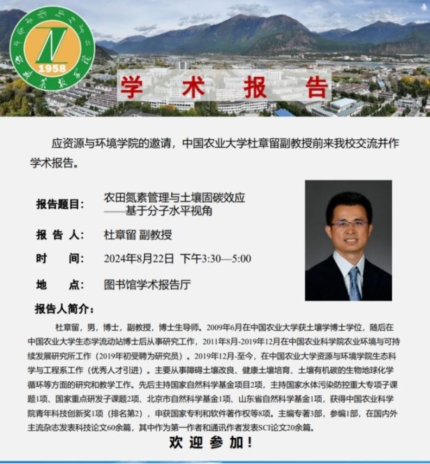 通过这次报告,为我校土壤学相关领域的科学研究提供了新的研究方向和研究方法。同时搭建学习交流机会,拓展研究生科研视野,不断提升农院研究生培养能力,助力西藏农业事业发展。