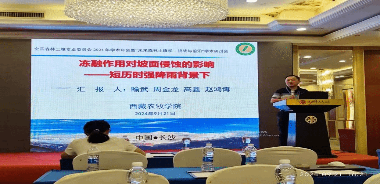 中国林学会森林土壤专业委员会、中国土壤学会森林土壤专业委员会于2024年9月20日至22日在湖南省长沙市召开全国森林土壤专业委员会学术年会暨“未来森林土壤学:挑战与前沿”学术研讨会。西藏农牧学院喻武教授带领团队中田方霄、曹盛明和刘超溢3位同学参加此次会议。
