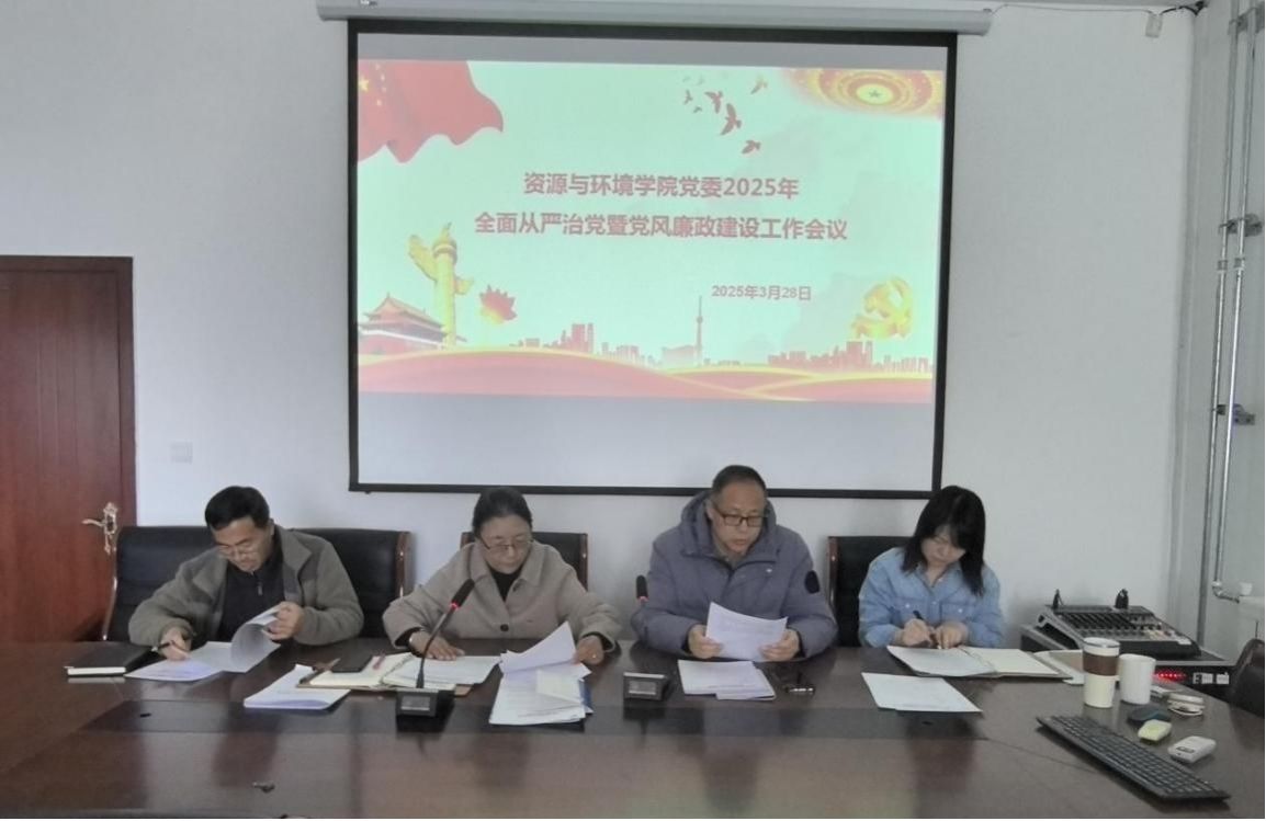 资源与环境学院党委2025年全面从严治党暨党风廉政建设工作会议于2025年3月28日15:00在6506-2进行。会议由次仁吉书记主持,孙自保院长、王忠红、万丹副院长及全体教职工参加会议。