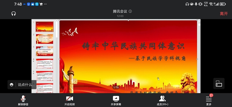 “教育是铸牢中华民族共同体意识最重要的途径之一,学校是开展中华民族共同体意识教育的主阵地。”为深入贯彻习近平总书记要求,引导广大学生铸牢中华民族共同体意识, 2022年9月28日,资源与环境学院学生第四党支部通过线上方式开展 “铸牢中华民族共同体意识”学习教育, 本次学习教育由支部书记王凯老师主持,章国豪老师主讲,四支部全体党员参加了学习。