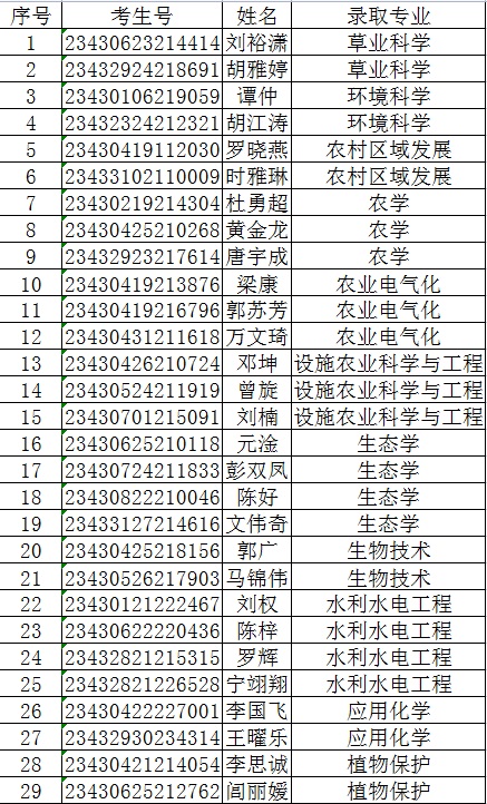 西藏农牧学院2023年普高招生录取名单(湖南省)