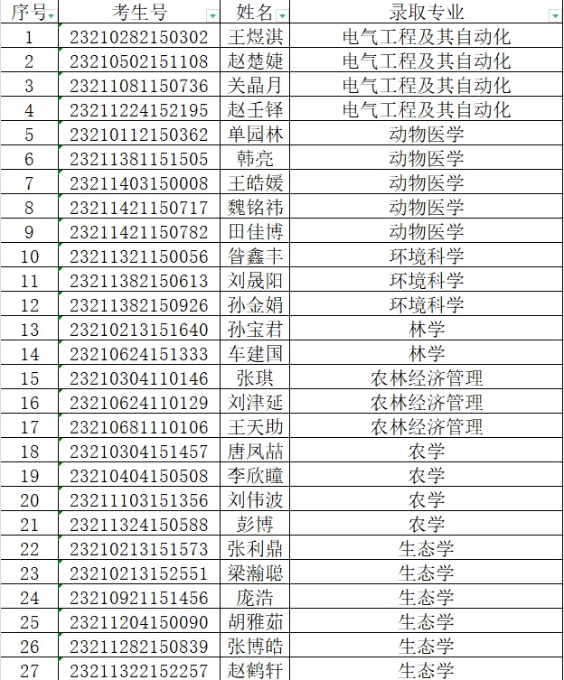 西藏农牧学院2023年普高招生录取名单(江西省)