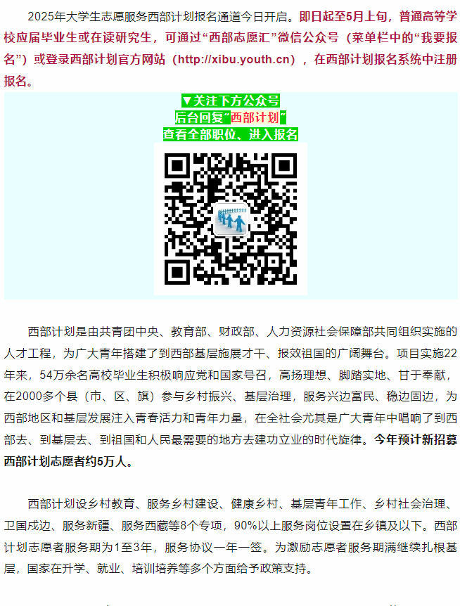 重磅!全国招募50000人!2025年西部计划报名通道开启~