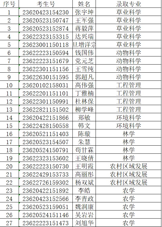 西藏农牧学院2023年普高招生录取名单(甘肃省)