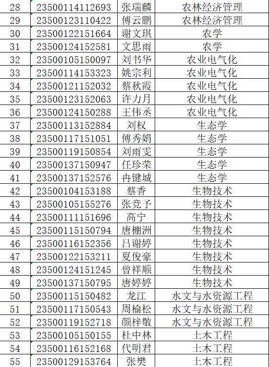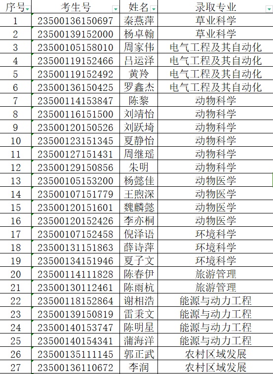西藏农牧学院2023年普高招生录取名单(重庆市)