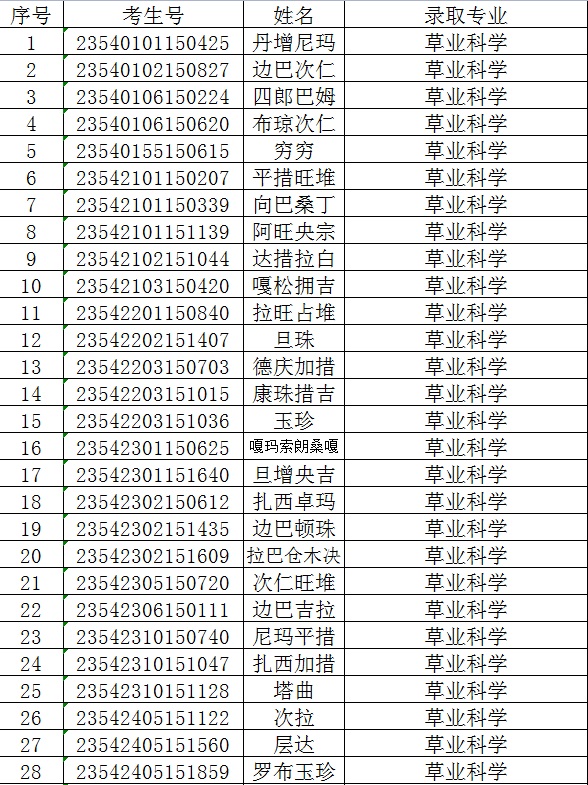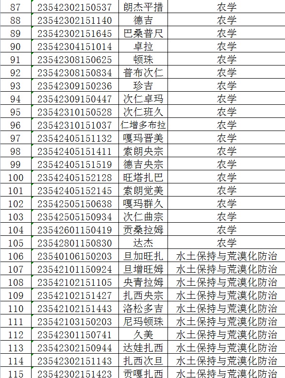 西藏农牧学院2023年普高招生录取名单(西藏地方专项计划)