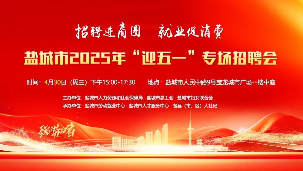 4月30日,盐城市2025年“迎五一”专场招聘会“职”等你来!