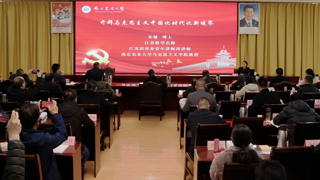 南京农业大学马克思主义教研室主任、第23批博士服务团成员朱娅教授作“开辟马克思主义中国化时代化新境界”专题辅导报告。结合党史、国史、改革开放史和社会主义发展史,结合国际国内形势,生动形象地讲解马克思主义时代化中国化发展历程和命题提出,深入分析习近平新时代中国特色社会主义思想的科学性和时代性,全面系统阐释习近平新时代中国特色社会主义思想的科学体系和历史地位,使大家对习近平新时代中国特色社会主义思想的重大意义、科学体系、丰富内涵有了更加全面的认识和更加深刻的理解,进一步深刻领悟“两个确立”的决定性意义,增强“四个意识”、坚定“四个自信”、做到“两个维护”,始终在思想上政治上行动上同以习近平同志为核心的党中央保持高度一致。