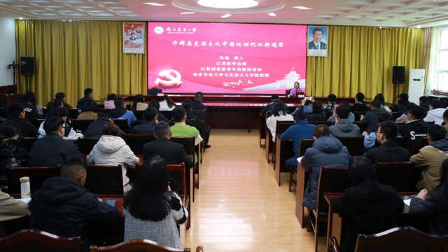 会上,南京农业大学马克思主义学院朱娅教授以《开辟马克思主义中国化时代化新境界》为题,结合中国近现代以来无数仁人志士探索发展强国道路的艰辛历程,生动讲解了马克思主义时代化中国化命题提出的发展历程,使大家更加清晰地认识了“两个结合”的深刻内涵和马克思主义中国化时代化的鲜明特点;从国际国内经济社会发展形势及社会主义在中国的实践发展,充分阐释了习近平新时代中国特色社会主义思想的科学性和时代性;从习近平新时代中国特色社会主义思想解决新中国发展的时代问题及其核心要义、主要内容、世界观和方法论等方面,全面系统讲解了习近平新时代中国特色社会主义思想的科学体系和历史地位,使大家对习近平新时代中国特色社会主义思想的科学性和时代性有了更加全面深刻的理解和强烈的认同。