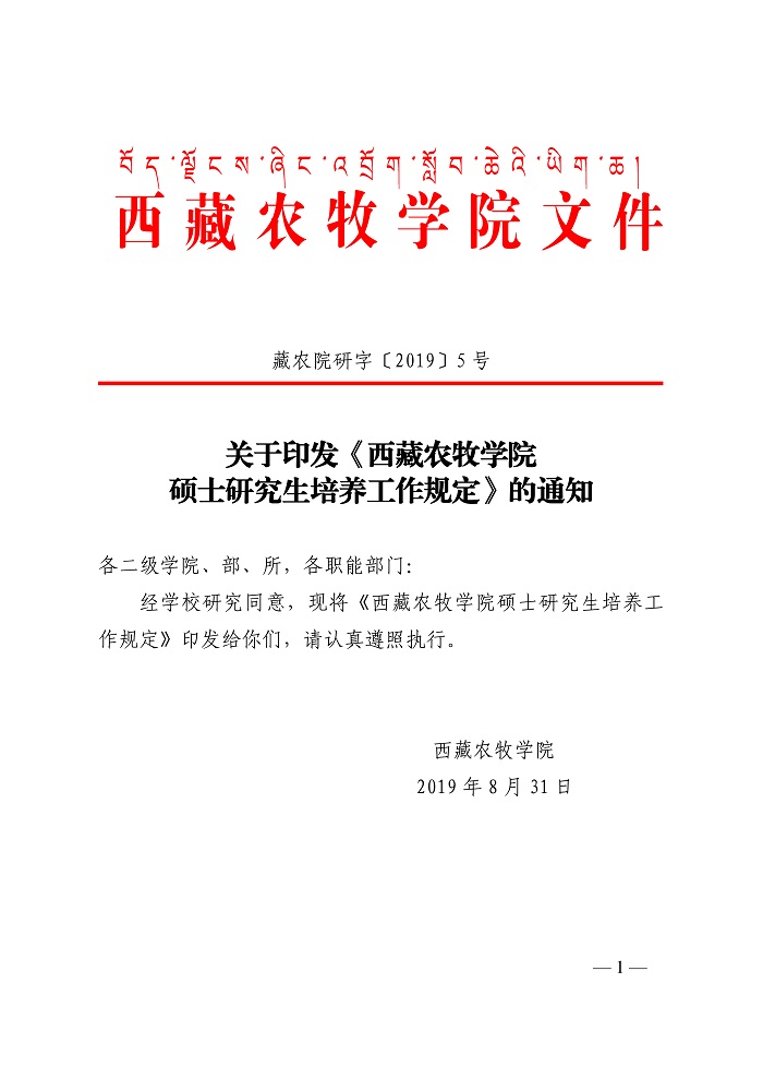 下一条:关于印发《西藏农牧学院研究生学籍管理规定》的通知