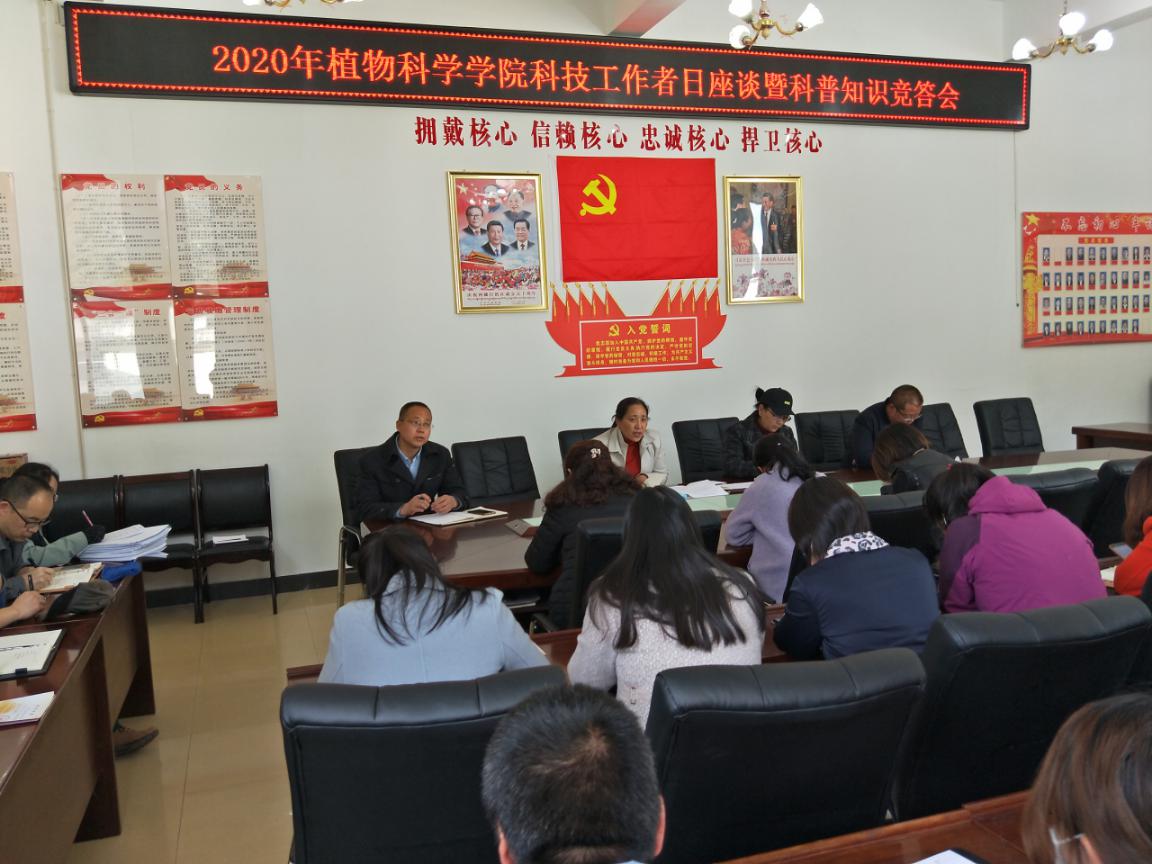 2020年5月30日上午9点,在植物科学学院四楼会议室,孙自保副院长组织召开了我院全国科技工作者座谈会。会议由次仁吉书记、旺姆院长、王元林副院长、各教研室、各科室科技工作者参加。