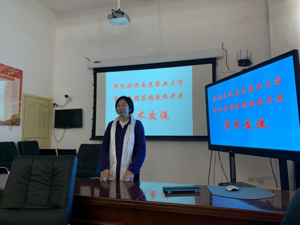 崔教授与植科院首先就开展虚拟仿真教学进行洽谈,签署合作协议,并向植科院免费提供食用菌工厂化生产虚拟仿真实验课程软件。协议签署后崔教授向与会人员介绍了“虚拟仿真教学资源的建设与应用”情况,并围绕“蔬菜镉污染及防控、富硒芽苗菜工厂化生产、芽苗菜花青苷合成调控机理、藜麦种质资源创新和种植”做了专题学术报告。