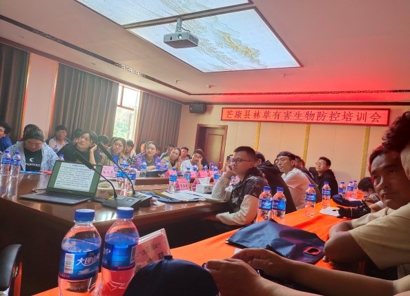 为深入贯彻落实习近平生态文明思想,提高基层林草队伍有害生物监测防治能力。按照自治区林草局关于草原蝗虫监测防控和林草有害生物防治相关工作要求,我院唐晓琴、洪大伟两位老师受昌都市林草局的邀请于8月23日至9月13日,在昌都市和其重点县举办了“草原蝗虫监测防控和林草有害生物防治”培训班。其中昌都市林草局组织11县(区)林草局技术骨干和卡若区林草资源管护人员共54名学员,举办了为期5天的“全市草原蝗虫监测防控和林草有害生物防治”培训班。 然后8月31-9月13日两位老师在工作人员陪同下前往边坝县、洛隆县、芒康县、左贡县、八宿县对县级林草资源管护人员进行了专门的培训。