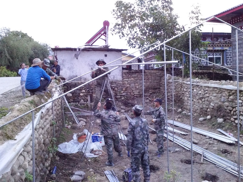 本项目结合自治区的精准扶贫工作计划,将为米林县羌纳乡羌渡岗村5户贫困村民修建多功能温室大棚,利用我院园艺教研室的专业优势为种植户提供技术支持和后续服务,使这些贫困村民一方面能够食用到自己种植的新鲜蔬菜,另一方面,通过专业指导,提高村民种植大棚蔬菜的水平,帮助他们掌握最新的生产技术,提高他们脱贫致富的能力。在项目实施过程中,我们也充分利用这个机会,增加学生的实践动手能力,鼓励2016级园艺本科学生自愿参加项目建设,目前该班有5名学生参与和项目的前期准备和大棚的搭建工作。