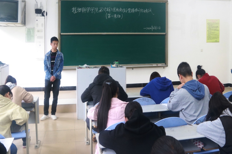 为检验第39期入党积极分子党课培训成效,严格规范发展党员工作程序,保证发展质量,进一步提高入党积极分子的理论水平,植物科学学院党委于2020年6月12日在2301、2302两个教室举行第39期入党积极分子党课培训结业考试,此次考试由各学生党支部副书记担任监考员。