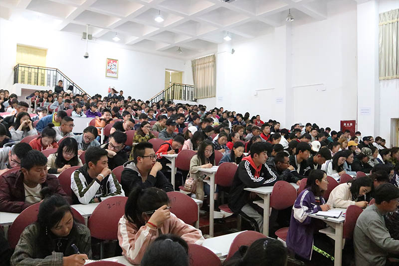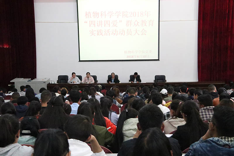 为贯彻落实党的十九大,积极宣传“四讲四爱”,明确“四讲四爱”的重要意义和目的,增强师生干部们的“四个意识”,我院于2018年6月10日10:00在二教107教室召开植物科学学院2018年“四讲四爱”群众教育实践活动动员大会。植物科学学院党委副书记次仁央金、学生科副科长多吉次旦、学生党支部书记次仁旺姆及四百余名师生参加,会议由王倩倩老师主持。