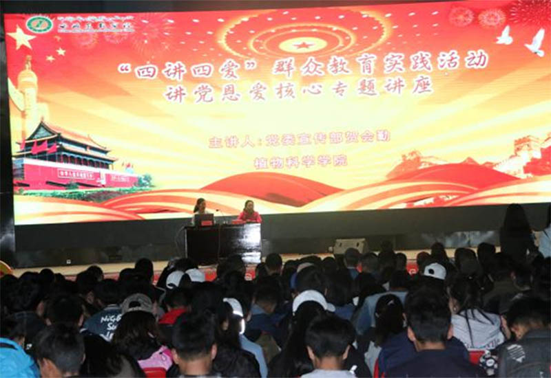 为热烈庆祝中国共产党成立97周年,全面贯彻党落实习近平新时代中国特色社会主义思想和党的十九大精神,深入推进“两学一做”学习教育常态化制度化,践行“四讲四爱”群众教育实践活动,牢固树立“四个意识”,植物科学学院党委于2018年6月30日上午10:00邀请党委宣传部贺会勤副教授,在校文体馆为我院全体师生做“讲党恩爱核心”专题讲座,会议由植科学院党委书记次仁吉主持,我院共计956人参加此次学习。