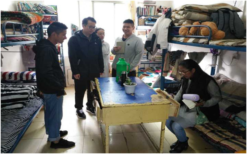 首先,次仁央金副书记强调了此次安全排查的重要性及要求;随后对所有宿舍逐间,从重点场所的消防安全设施情况;从学生宿舍管制刀具、是否使用超负荷电器、使用变压插座板、私接电线等安全用电;从宿舍防盗安全及易燃易爆物品和酒类等进行全方位的安全隐患大排查。对存在安全隐患问题和现象的每一间宿舍成员,一一进行教育,并提出主要措施和具体做法,有些进行当场整改。对卫生不合格和不达标宿舍及个人提出整改要求。检查过程中学生干部对存在安全隐患、卫生脏乱差的宿舍进行详细,以便落实整改。