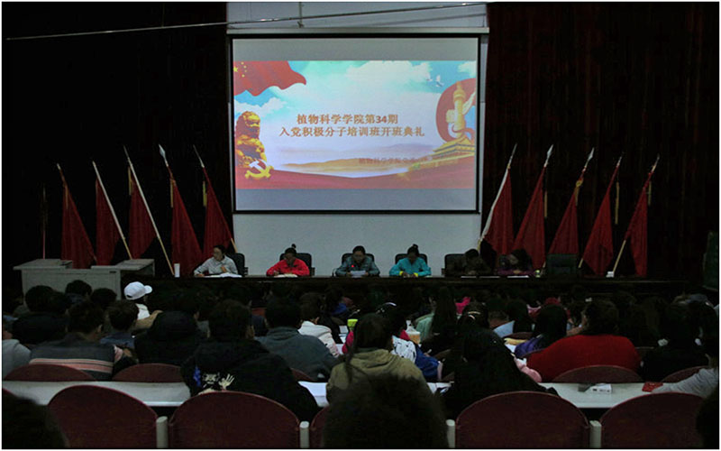 为了学习贯彻“四讲四爱”重要精神,践行“两学一做”常态化制度化要求,加强学生思想政治教育,普及党的知识,进一步加强入党积极分子教育培训工作,提高入党积极分子的思想觉悟和理论素养,以优异的成绩喜迎党的十九大。植物科学学院于2017年10月14日9时30分在2107举行了第34期入党积极分子党课培训开班典礼。参加本次开班典礼的有植物科学学院党委书记次仁吉、副书记次仁央金、学生科全体辅导员以及本院149名入党积极分子。开班典礼由王倩倩主持。