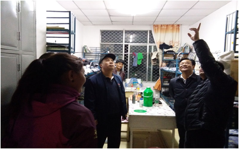 十月林芝的夜晚略显寒意,夜里21:30,书记一行不辞辛苦深入我院学生四栋14、16年级的一间间宿舍进行走访。走访调研中、查看宿舍住宿条件、宿舍内外安全防患设备等情况,和蔼的向同学询问学习、生活问题,以及学生们的需求。并向学生讲述了新宿舍区建设的筹备情况,告诉同学们明年就能够住上崭新的宿舍。