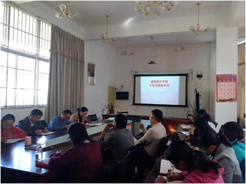 2017年10月18日,举世瞩目的中国共产党第十九次全国代表大会,在北京人民大会堂隆重开幕,这是我国全面建成小康社会决定性阶段召开的一次十分重要的会议。为深入学习贯彻习近平总书记在中国共产党第十九次全国代表大会上的报告,10月20日下午植物科学学院在四楼会议室进行了“植物科学学院十九大报告学习会”。学院全体教职员工参加学习,会议由次仁吉书记主持。