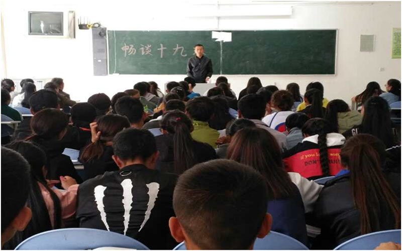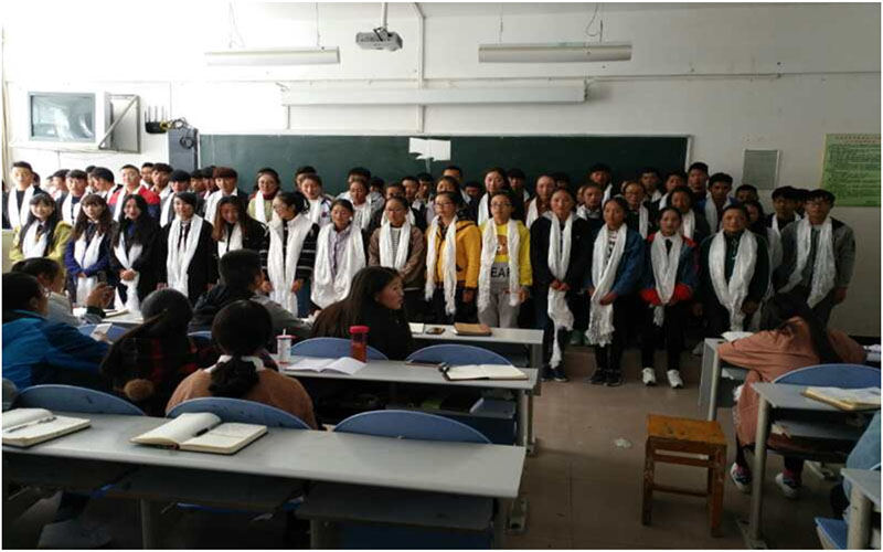 然后,西热朗达同学给每位新成员献上了洁白的哈达,恭喜大一新生加入学生会这个大家庭。同学们每个人脸上洋溢着快乐的笑容,心里充满了对学生会这个大家庭的喜爱。文艺部的同学献上一曲悦耳的歌以表庆贺。最后,自律部的大三学长畅谈了十九大开幕式观后感,并对学生会的工作提出了一些宝贵建议和意见,使在座的新老成员受益匪浅,备受鼓舞。