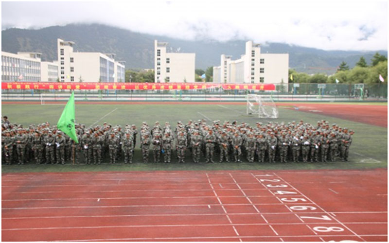 在正式训练开始前,首先由我院师生自行清点人数,在人数清点完毕后我院党委副书记次仁央金书记与参与此次军训的学员进行热切交谈,在与一些区外的同学的交谈中,次仁央金书记满怀关切的向大家询问来到林芝身体是否适应、饮食是否习惯、宿舍环境是否满意等贴近受训新生切身实际的问题,在广大的新生群体中引发热烈反响。