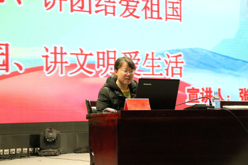 首先,次仁吉书记强调了本次宣讲大会的重要意义。其次,由宣传部张涛老师围绕“讲团结爱祖国”这个主题进行宣讲。