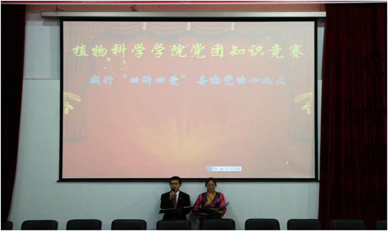 根据自治区党委贯彻落实“四讲四爱”主题教育实践活动及庆祝中国共产党成立96周年的重要指示精神,植物科学学院党委于2017年7月1日上午十时三十分在2107报告厅开展“践行 ‘四讲四爱’——喜迎党的十九大之党团知识竞赛”活动。莅临本次活动的有植物科学学院党委书记次仁吉、院长王中奎、党委副书记次仁央金、副院长达红旗,我院全体学生党员、积极分子共300余人参加此次活动。