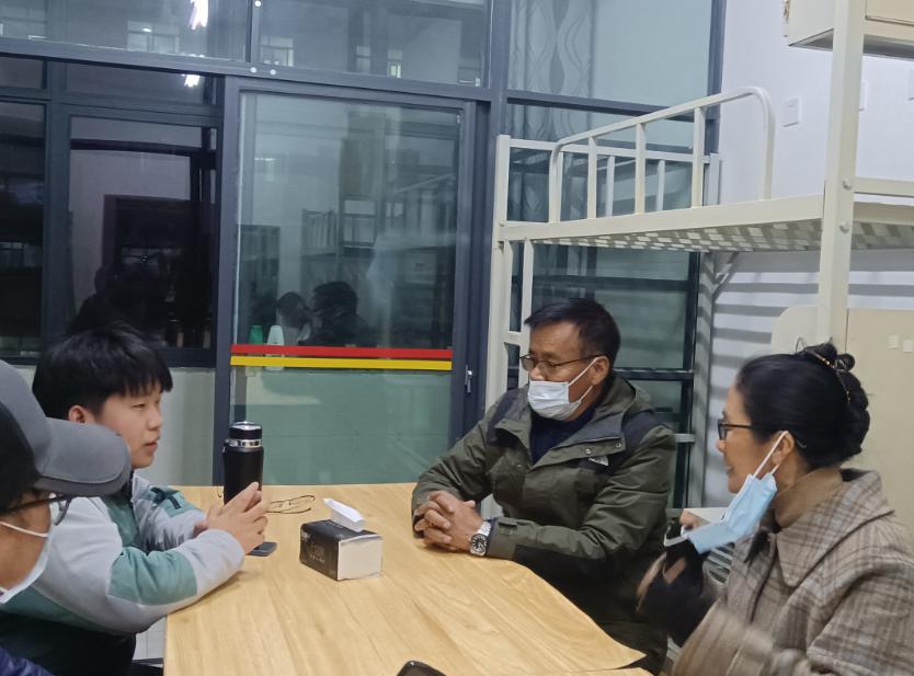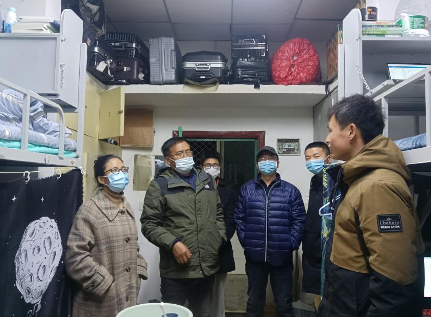 走访过程中,宿舍中洋溢着师生温情。每进一间宿舍,老师们询问同学们生活中是否存在困难,认真观察宿舍设施功能是否完备,将学生的宿舍生活体验放在重中之重的位置,情至深、意至切,如舐犊情深一般。同时,达瓦书记表达了对同学们的殷切期望,望同学们造烛求明,穷且益坚,以坚忍不拔之志,刻苦学习大学知识,成就自我,不负青春,以青春之我点亮青春之中国。
