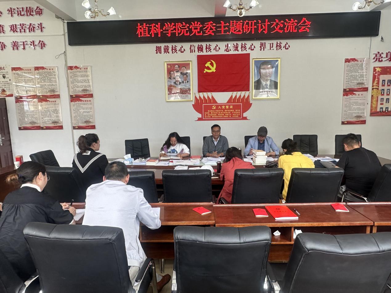 在主题教育中,植科学院党委高度重视二十大党章的学习领会,纳入重要学习计划,加强组织学习,强化党章学习,要求全体党员领导干部坚守党纪党规,落实党要管党、全面从严治党政治责任,更加自觉地学习党章、遵守党章、贯彻党章、维护党章,切实把党章作为加强党性修养的根本标准,作为拥护“两个确立”、做到“两个维护”的实际行动。为进一步加强党章学习,2023年7月14日下午3:30,植科学院党委在二号教学楼四楼党员活动室开展了新《党章》专题学习研讨会,党委书记达瓦、党委宣传委员董爱荣、党委青年委员秦丽分别交流发言,达瓦书记主持会议,党委委员、党员代表参加了学习会。