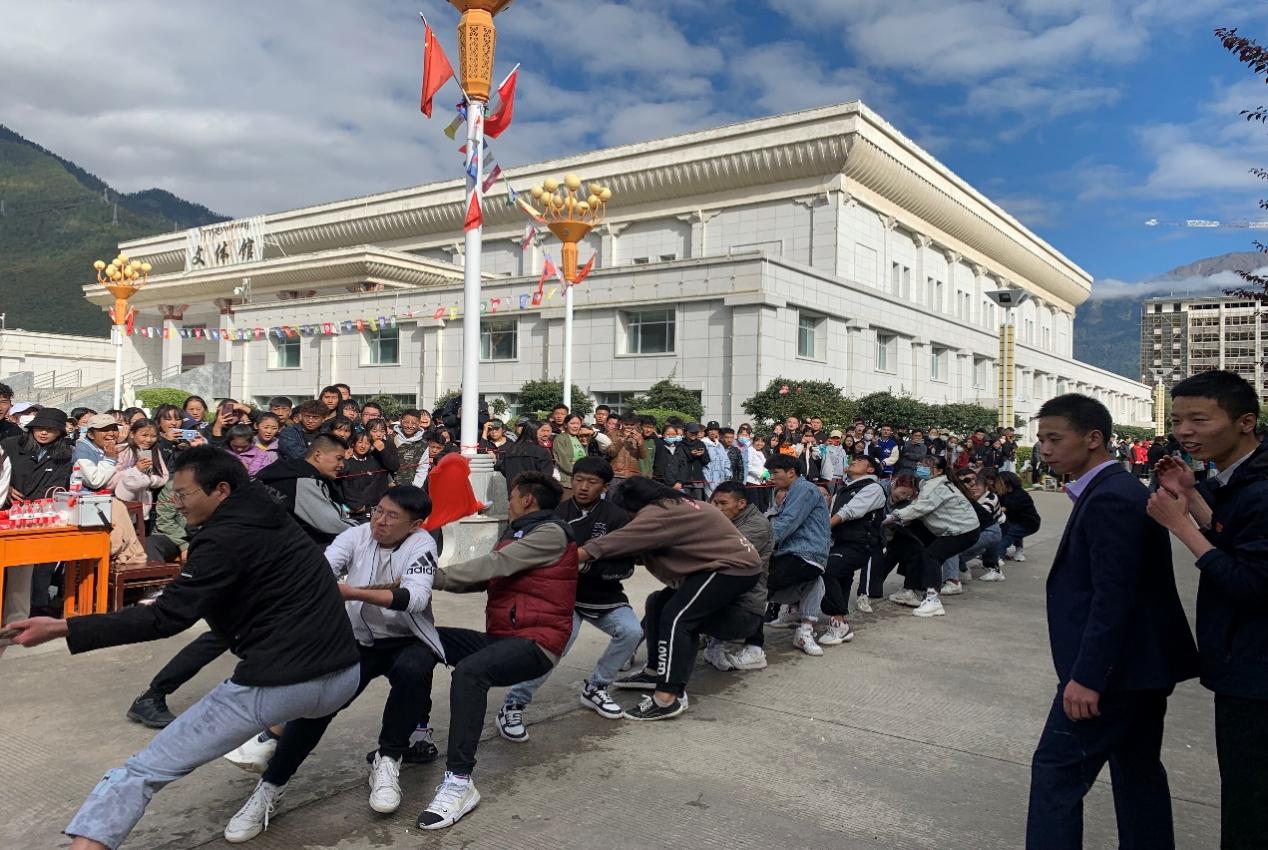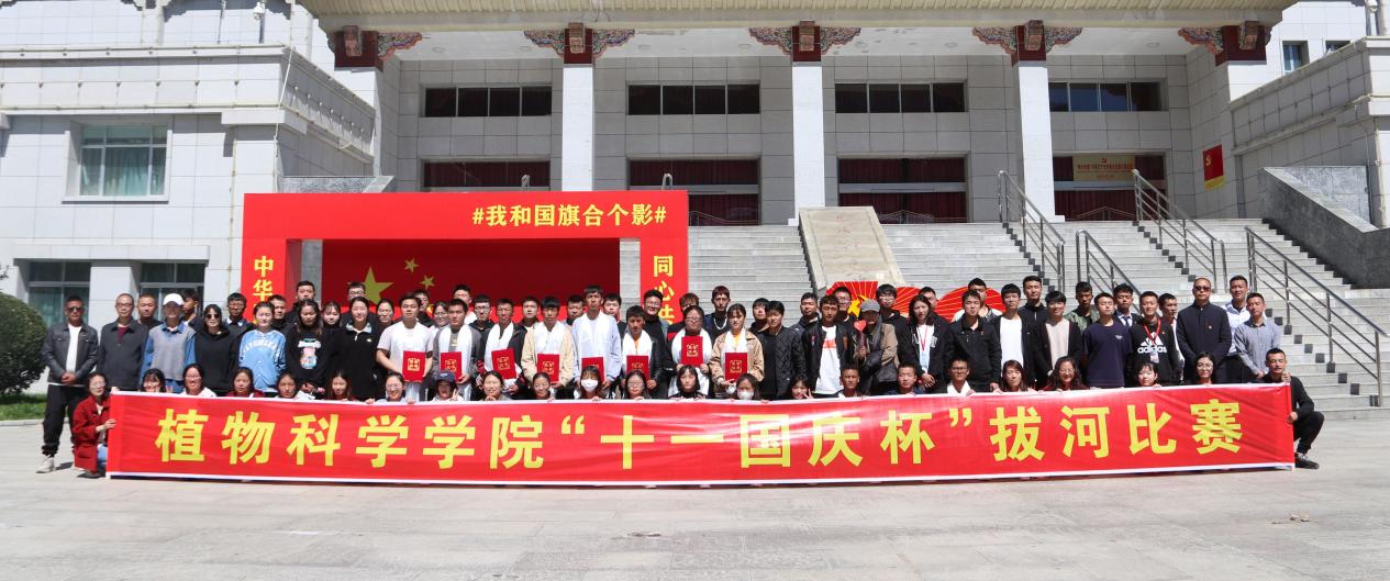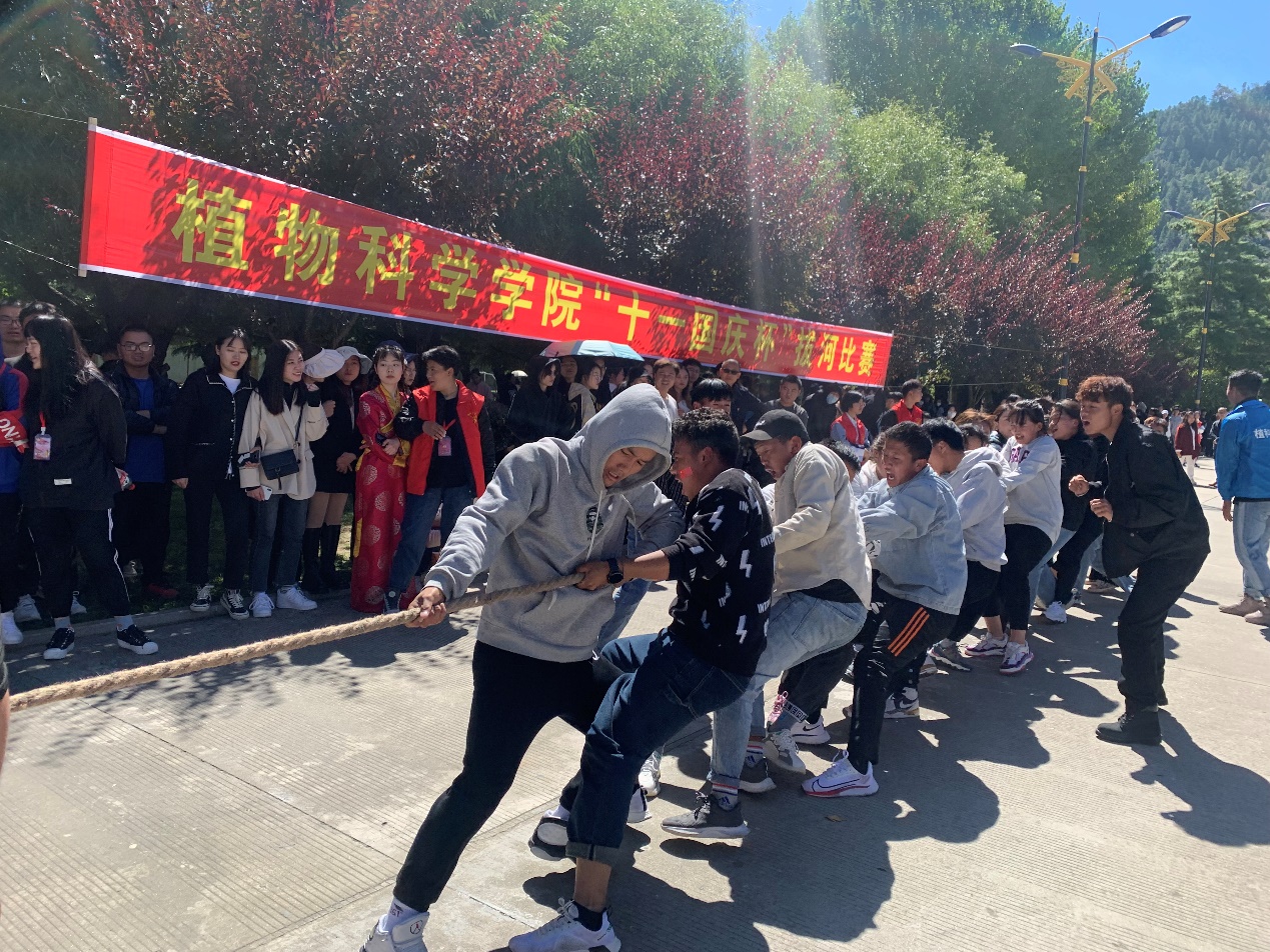 植物科学学院学生党支部于2021年10月1日庆祝伟大祖国72周年华诞之际在校文体馆前组织开展“喜迎国庆”拔河比赛。
